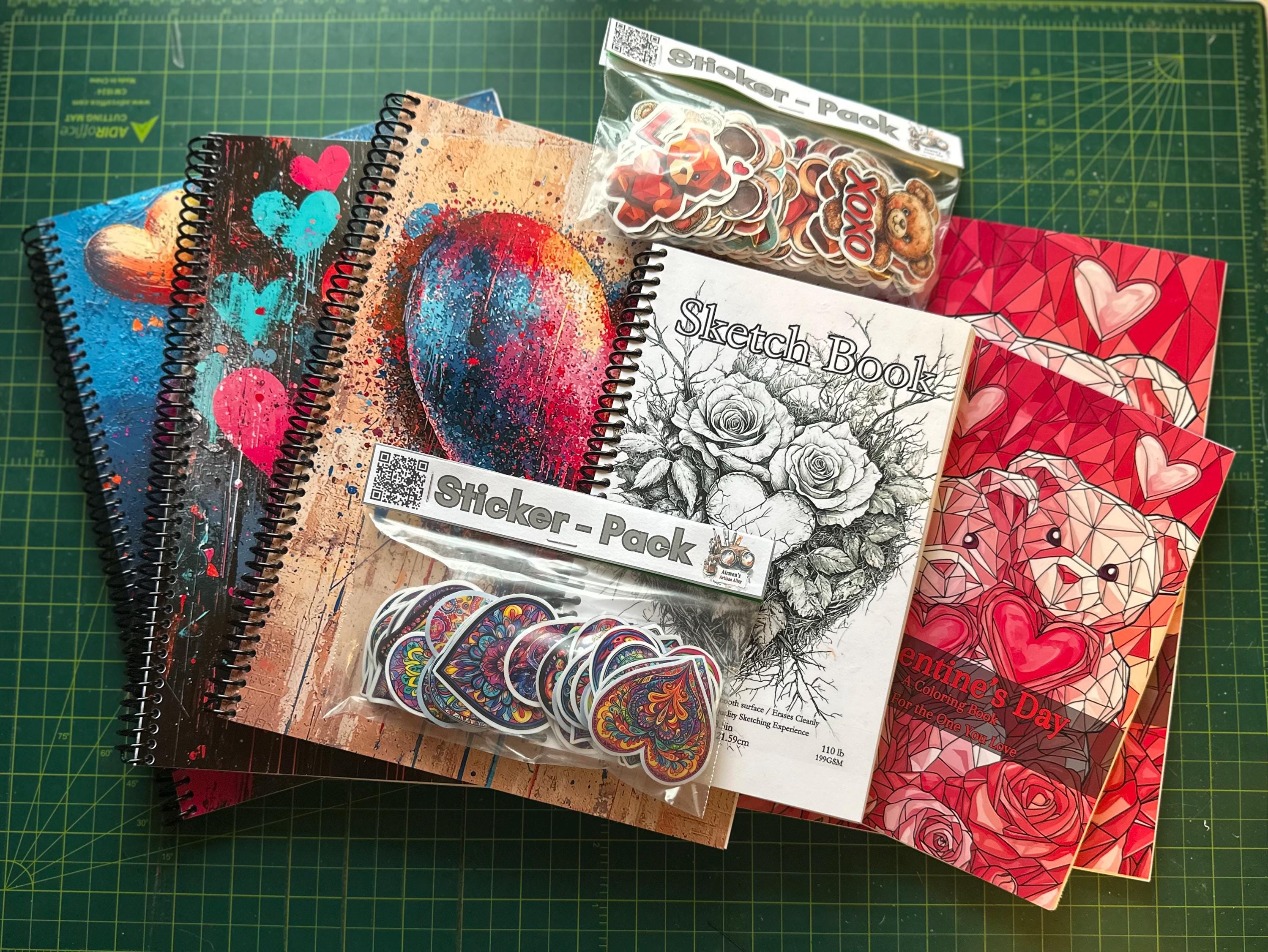 Celebrate love, creativity, and self-expression with our Valentine’s Day Stationery Gift Set! This romantic 9-piece bundle includes a delightful assortment of large notebooks (8.5x11in), charming coloring books, glossy sticker packs, and a beautiful compact sketchbook — all themed for Valentine’s Day.